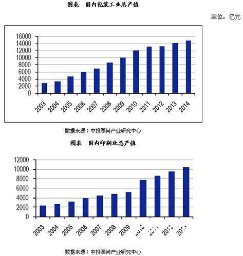 中投顧問發(fā)布的《2016-2020年中國包裝印刷行業(yè)投資分析及前景預(yù)測報告》指出,我國包裝印刷行業(yè)具有萬億市場規(guī)模。近十年來,我國包裝工業(yè)總產(chǎn)值從2002年2500多億元,到2009年突破1萬億元,超過日本,成為僅次于美國的世界第二包裝大國。2014年國內(nèi)包裝工業(yè)總產(chǎn)值完成14800億元,包裝行業(yè)社會需求量大、科技含量日益提高,已經(jīng)成為對經(jīng)濟(jì)社會發(fā)展具有重要影響力的支撐性產(chǎn)業(yè)。